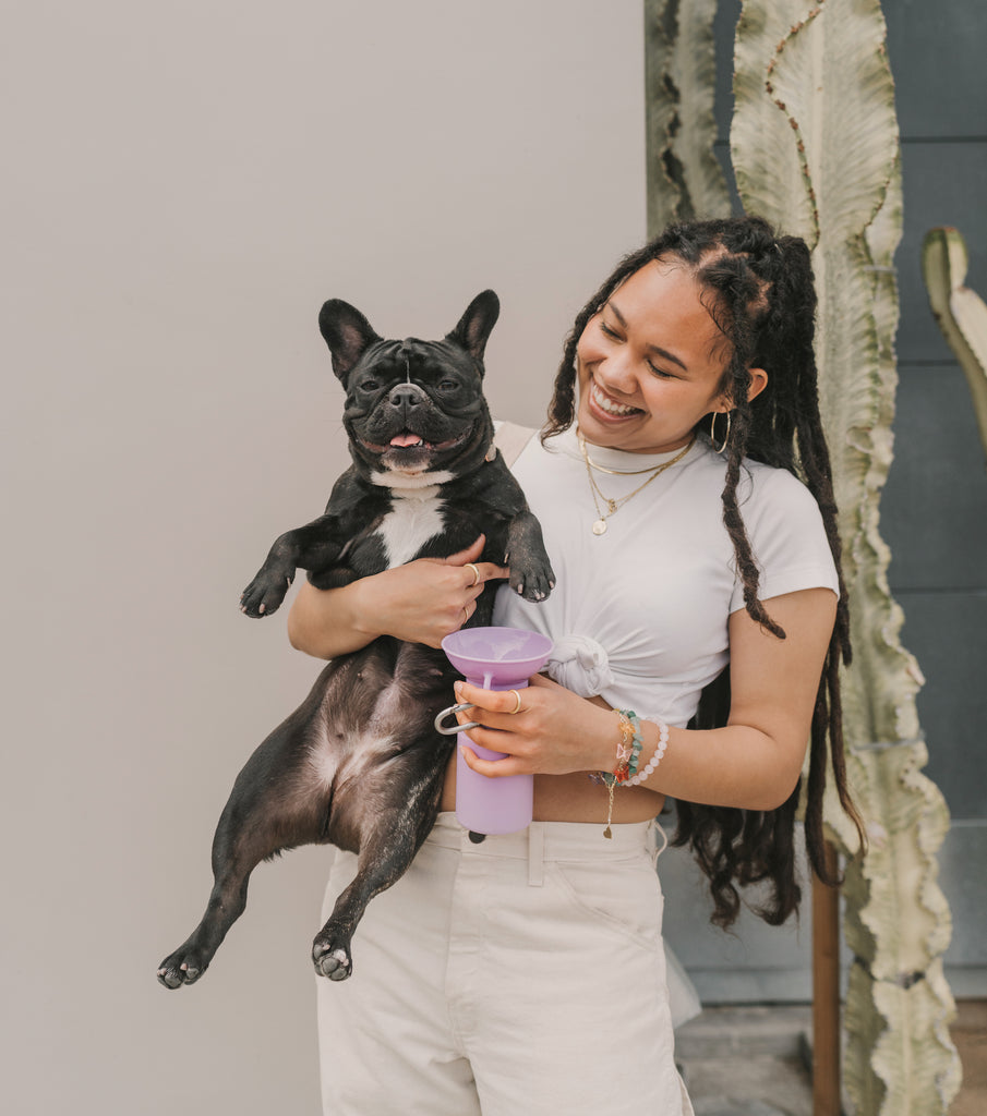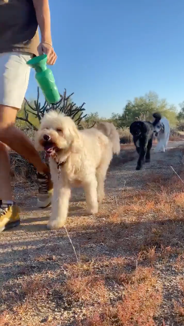 "우리는 강아지를 너무 사랑하지만 때로는 외출했다가 지저분해질 수도 있죠. 저는 버스터를 데리고 산책하러 나가기 전에 이 휴대용 물병을 가장 먼저 챙기게 됩니다. 목줄과 가방에 고정하여 쉽게 들고 다닐 수 있고 물 낭비를 줄이는 데 도움이 됩니다."