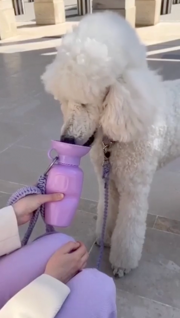 “산책 중이거나 집 밖에 있을 때 우리 집 강아지는 사람이 사용하는 물병이나 야외 수도 같은 일반적인 물을 마시는 것을 두려워했어요. 근데 물병을 휴대하기 시작한 후부터는 강아지가 그릇 모양의 꼭대기로 솟아오르는 물을 마시는 것을 정말 좋아합니다.”